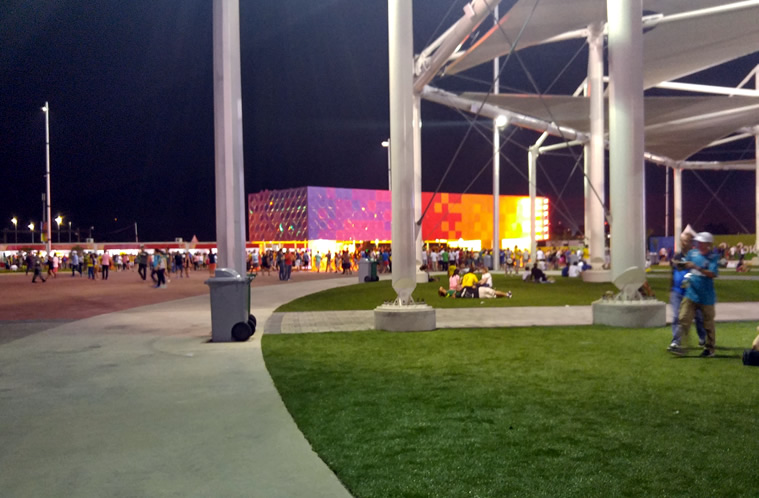 O Parque Olímpico da Barra é um complexo de 1,18 milhão de metros quadrados e conta com nove instalações, palco das disputas de 16 modalidades Olímpicas. É imenso! Vale a pena ir mais cedo – se você for para competições na parte da tarde – para curtir os estandes dos patrocinadores como: Coca-Cola, Nissan, Skol, entre outras.